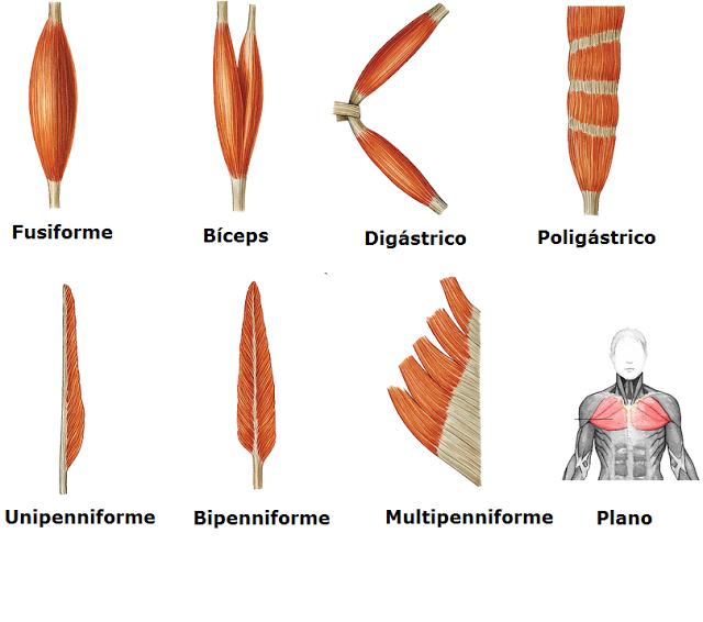 - Fusiformes – Tenen forma arrodonida que es va fent estreta en els seus extrems adoptant forma de fus (per exemple el braquial anterio