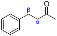 Després, tenim això del ‘carbó central alfa’. La tal posició alfa (α) es refereix al primer àtom unit a un grup funcional. La beta (β) designaria la 2a, etc. (veure imatge dreta). La qual cosa ens porta a la quarta característica dels aminoàcids, la de la cadena lateral.