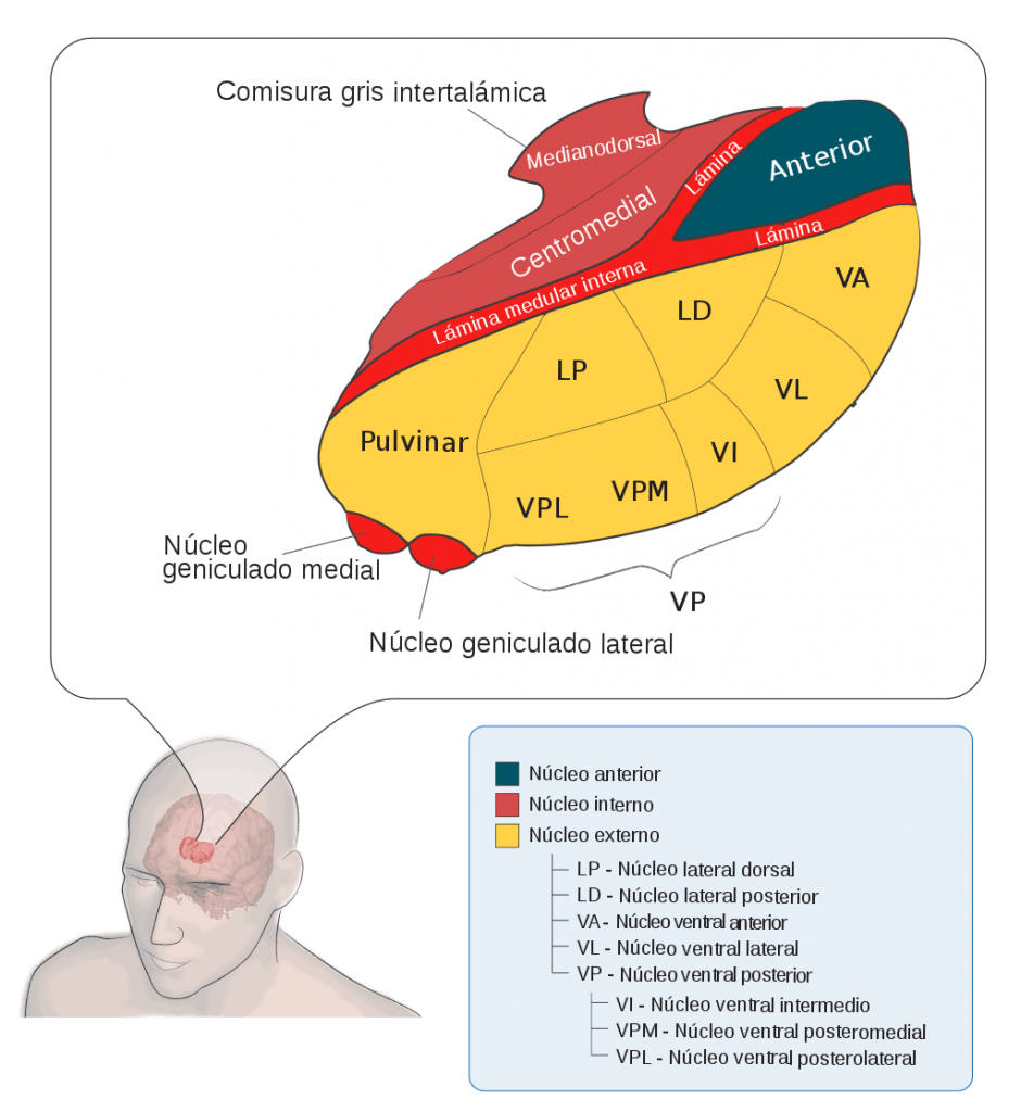 - Nucli reticular – Integra i filtra les activitats dels altres dos nuclis talàmics